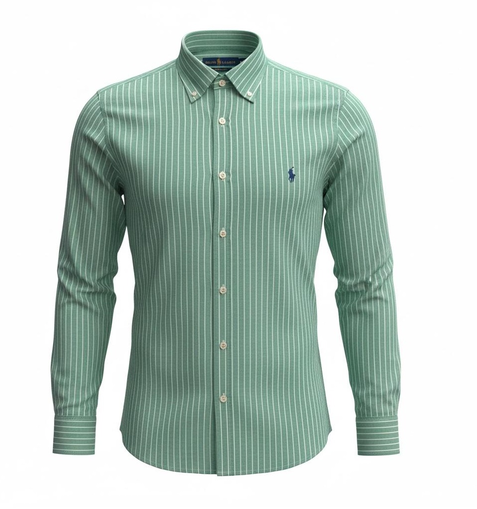 Camisa Polo RL Manga longa Masculina Custom Fit Linho Listrada Verde mescla