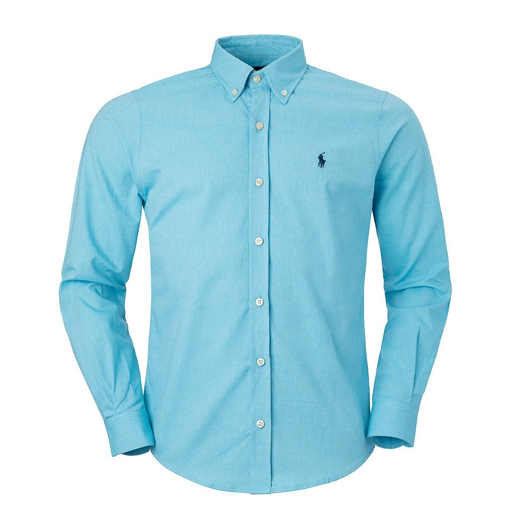 Camisa RL Manga longa Masculina Custom Fit Oxford Azul Turquesa