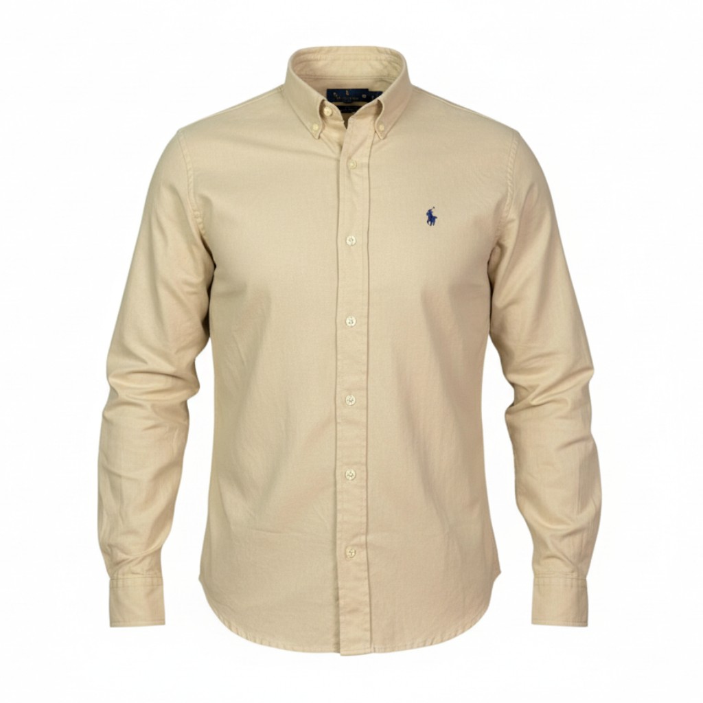 Camisa manga longa RL Masculina Custom Fit Oxford Caqui