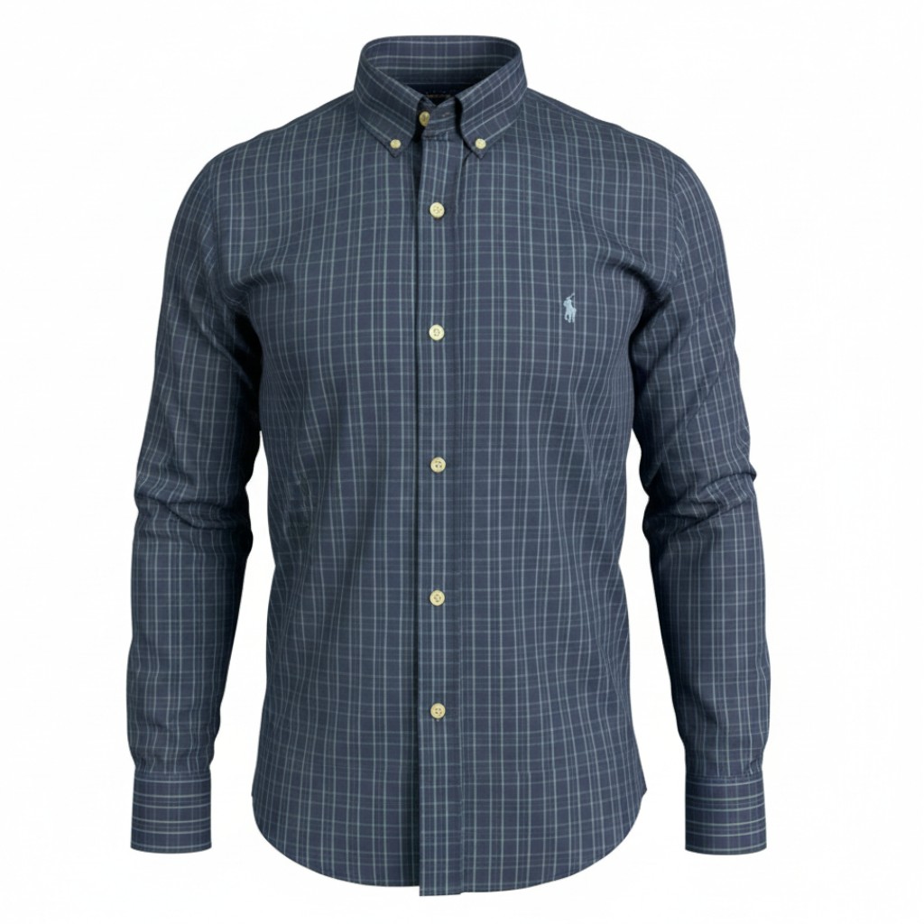 Camisa manga longa RL Masculina Custom Fit Xadrez Azul