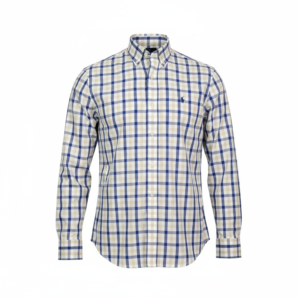 Camisa manga longa RL Masculina Custom Fit Azul e amarelo