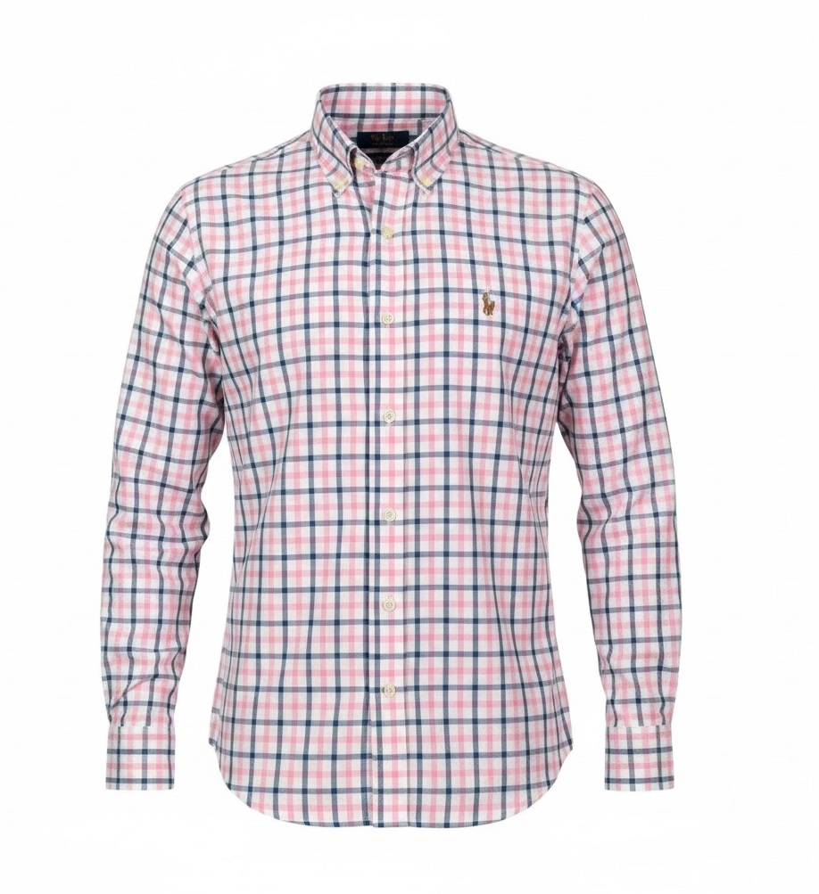 Camisa manga longa RL Masculina Custom Fit Xadrez Oxford Coloured Azul e rosa