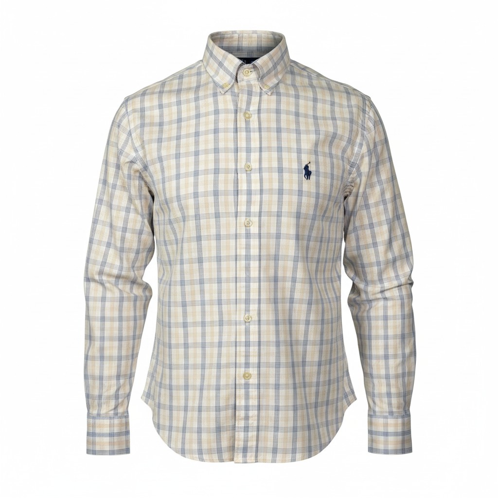 Camisa manga longa RL Masculina Custom Fit Xadrez Oxford Coloured Azul e rosa