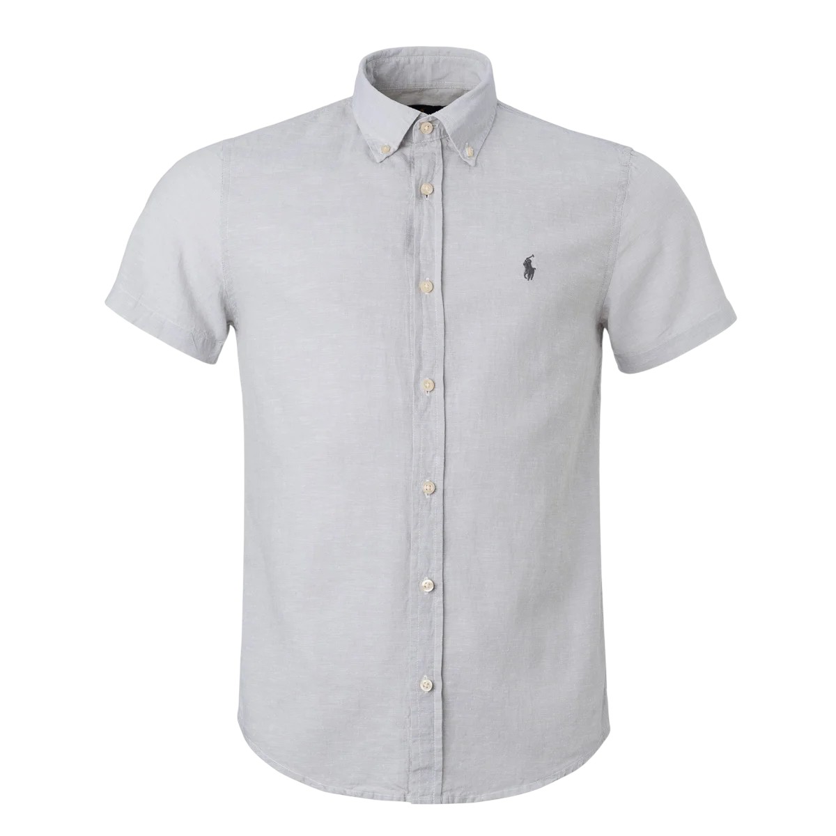 Camisa RL Masculina Custom Fit Manga curta Linho Cinza