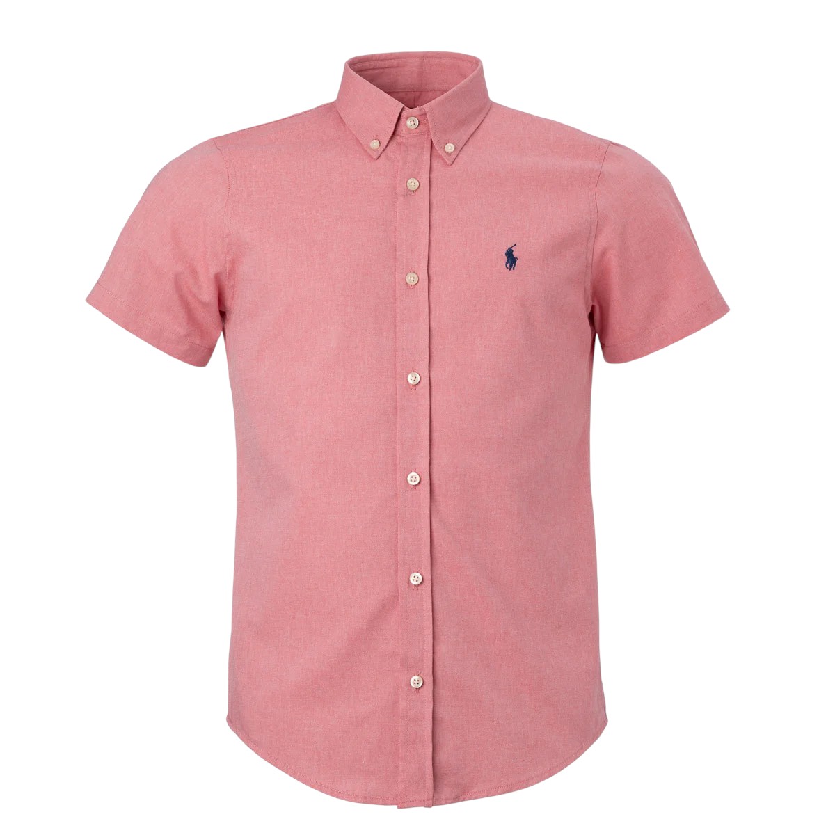 Camisa RL Masculina Custom Fit Manga curta Oxford Goiaba