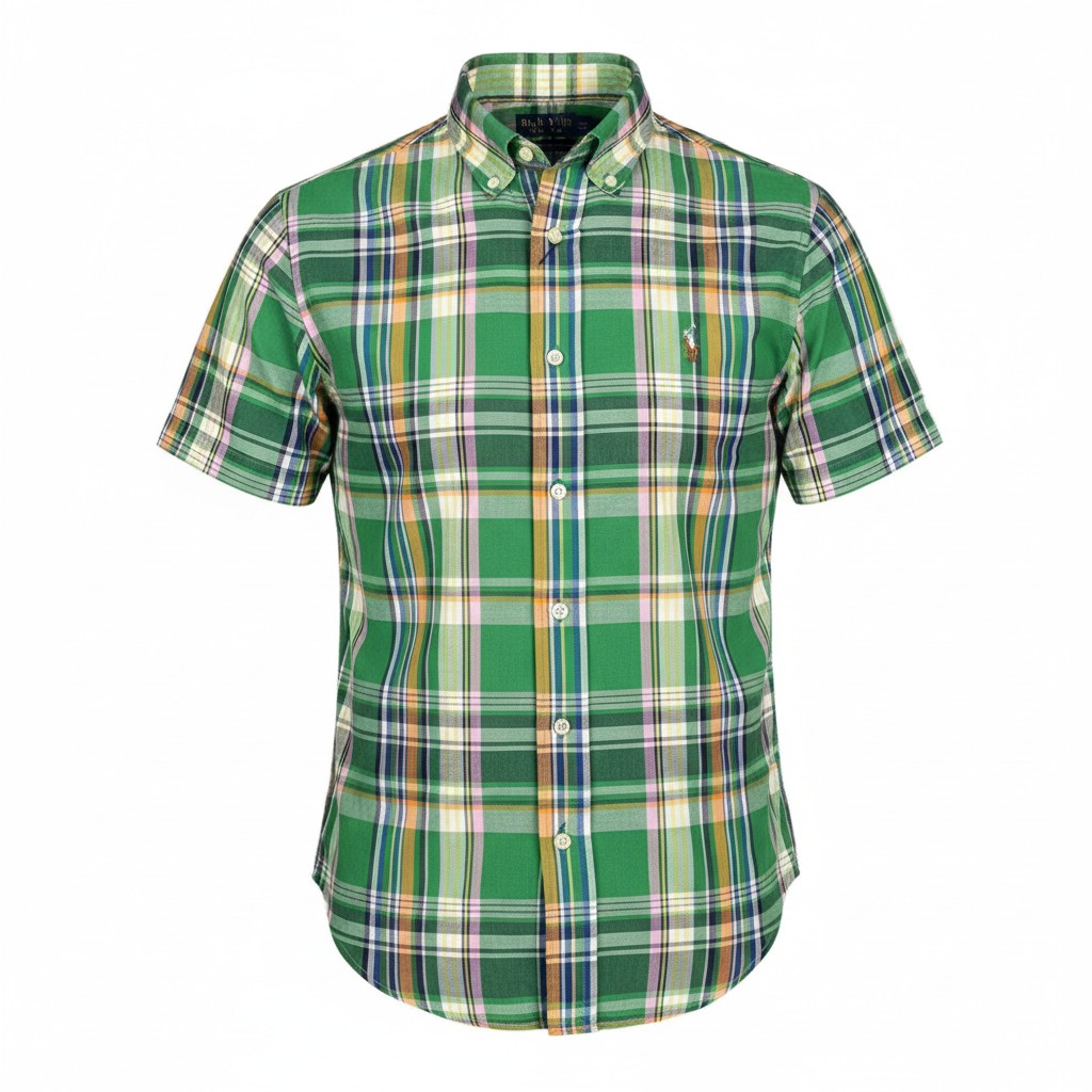 Camisa RL Masculina Custom Fit Manga curta Xadrez Oxford Coloured Verde
