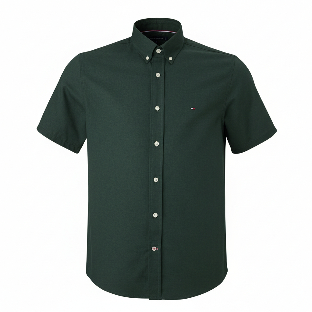 Camisa Tommy Hilfiger manga curta na cor verde escuro.