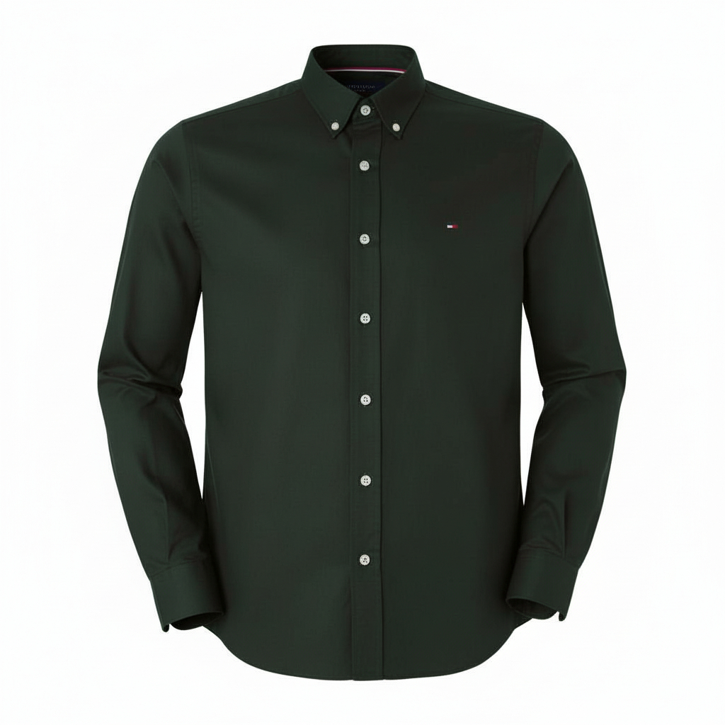Camisa Tommy Hilfiger manga longa na cor verde escuro.