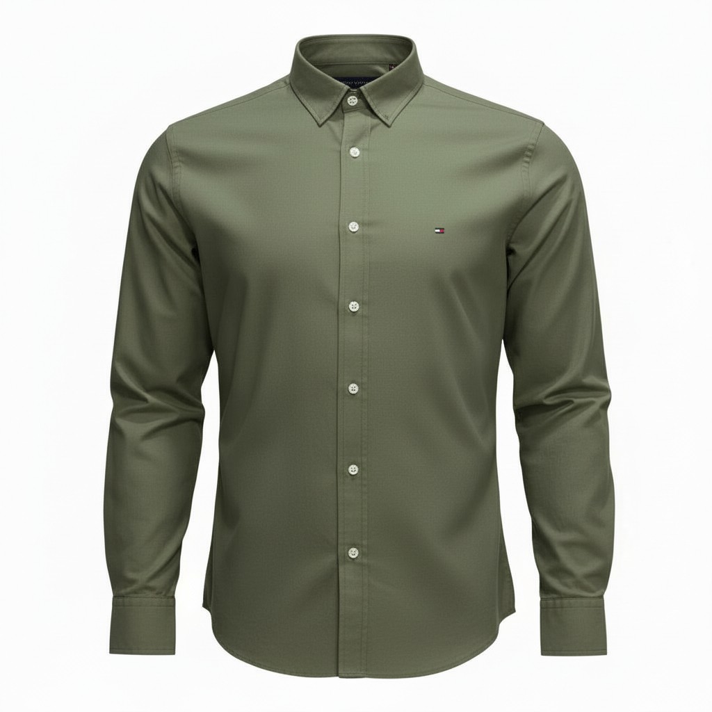Camisa Tommy Hilfiger manga longa na cor Verde militar.