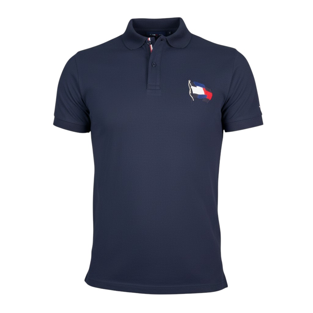 Polo Tommy Hilfiger manga curta na cor azul marinho. É confecionada em malha piquet, algodão mais leve e suave.