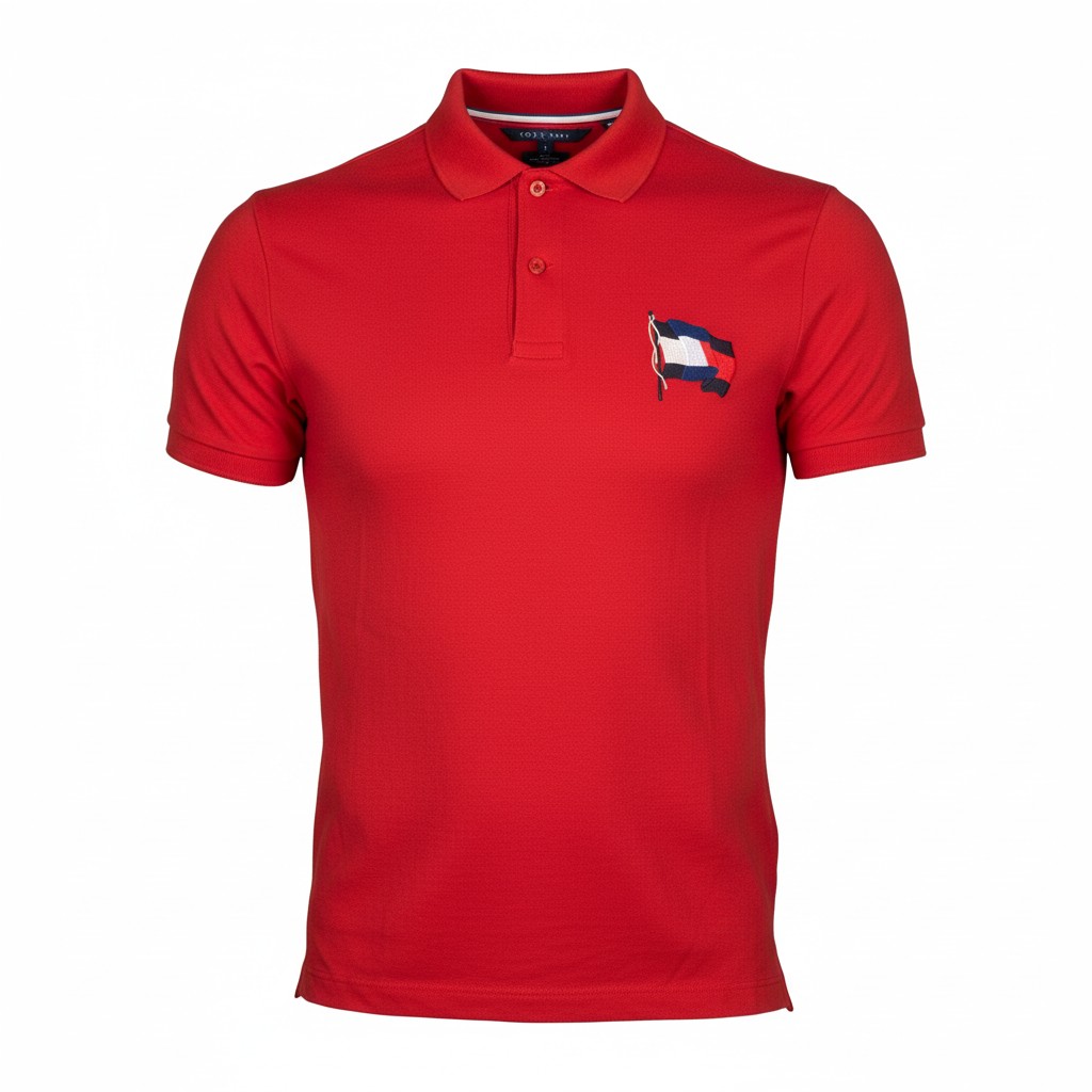 Polo Tommy Hilfiger manga curta na cor vermelha. É confecionada em malha piquet, algodão mais leve e suave.